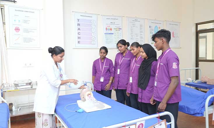 KMCT College of Nursing is equipped with modern laboratories that provide students with hands-on training and practical learning experiences. The labs include facilities for Nursing Foundation, Medical Surgical Nursing, OBG and Pediatric Nursing, Community Health Nursing, as well as Computer and Simulation Labs. These well-equipped spaces allow students to practice skills safely, gain confidence, and prepare effectively for real-world clinical settings.